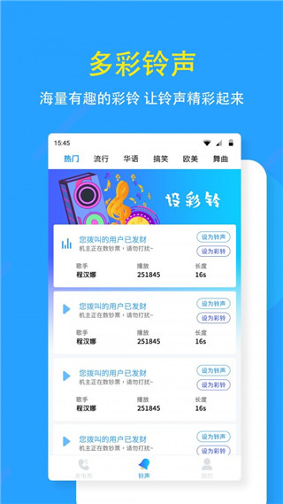 1、每日更新:每日更新火热的手机铃声、来电闪光灯、来电彩铃、短信闹铃、来电动画、来电动态壁纸、来电动态主题等,紧跟潮流不掉队,让你随时随地秀来电,来电秀秀不停!
