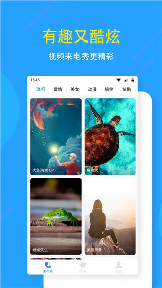 3、个性特色:个性,炫酷,潮流的来电秀,快来下载体验不一样的来电视频吧!