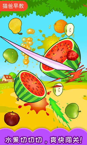 1、滑动手指,将可爱的水果切成两半,炸弹扣分,闹钟加时;