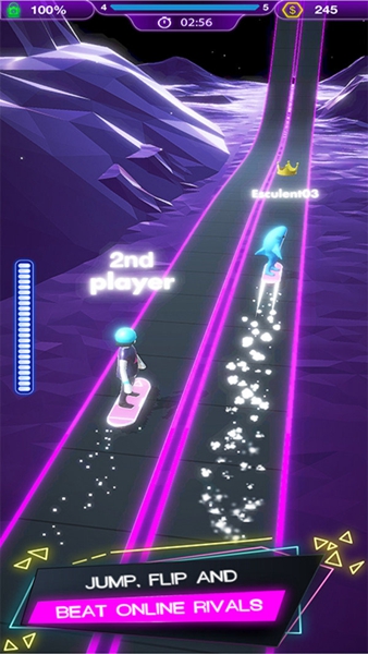 人类霓虹冲浪是一款放好玩的休闲益智类游戏,,玩家们可以在游戏中体验滑板竞赛,游戏的画风采用的是非常惊艳的卡通风格,才有非常轻松好玩的操作玩法,玩家们踩着自己的霓虹滑板在缤纷的道路上冲浪,感兴趣的朋友们快来下载吧。