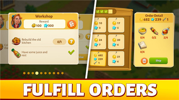 收割庄稼,饲养动物,为城市居民和探险生产商品,并发现新食谱!
