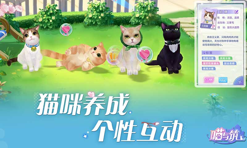 趣味互动活泼逗趣,十几种萌猫等你来吸,无论是资深猫奴还是云养猫玩家,都可以在《喵与筑》找到最初的心动