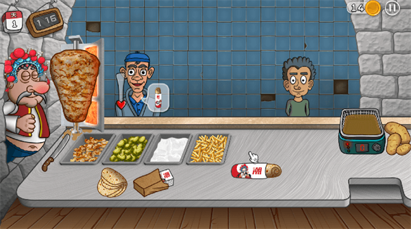 5.点击开始新的一天,进入卷饼界面,开始一系列操作。