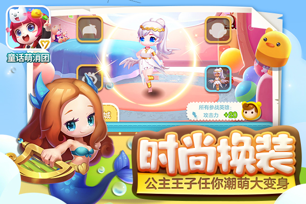 童话萌消团和传统的消除手游不同,玩法上更加丰富!在关卡中加入了RPG战斗元素,由主角及4名童话英雄组成冒险团,在保证HP不归零及剩余步数不为零的前提下达成消灭怪物或消除指定格子等条件方可过关。玩家能够边消除边体验战斗的乐趣,十分新颖!而且还有这几年很火的抓娃娃玩法,给你多样的欢乐!