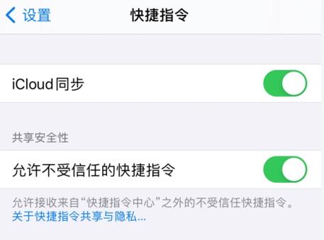 IOS14快捷指令安全性设置不允许不受信任的快捷指令显示灰色