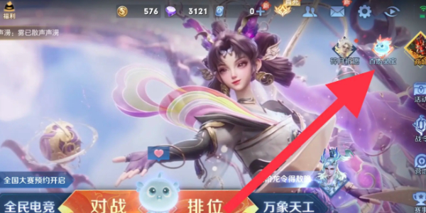 1、打开王者荣耀,点击游戏大厅界面中的【百态灵宝】。