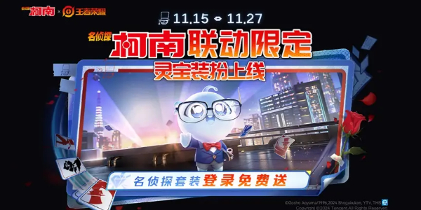 11月15日-11月27日,按提示与大厅灵宝完成互动,即可领取名侦探柯南联动限定灵宝装扮【名侦探套装】x1、灵宝改名卡x1。
