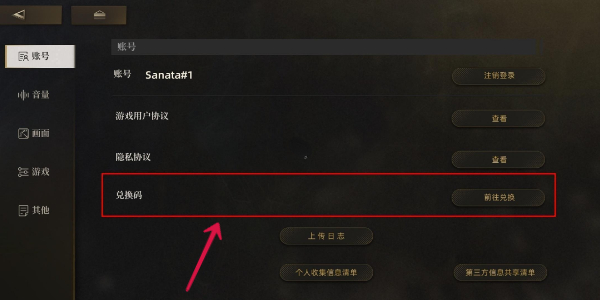 3、进入设置界面后在【账号】一览内容中找到【兑换码】选项,点击后就会弹出兑换窗口。