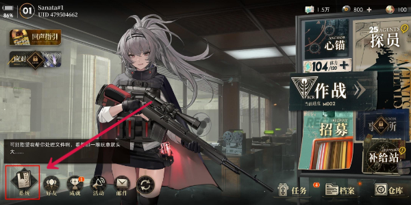 1、进入游戏,在主界面点击左下角的【系统】选项。