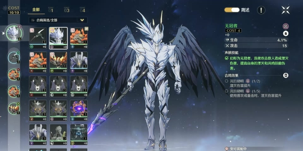 4cost:暴击伤害/暴击,3cost:湮灭伤害加成+攻击/湮灭伤害加成+湮灭伤害加成,1cost:攻击+攻击。