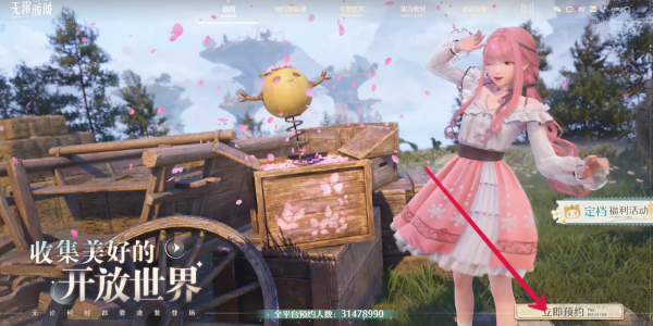 1、复制上方的网址链接到浏览器中就可以进入无限暖暖官网,进入官网后点击右下角的【立即预约】按钮。