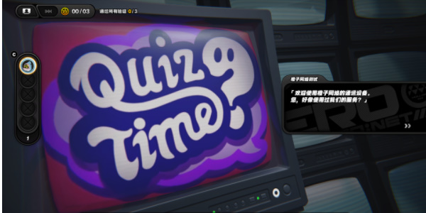 2、进入任务剧情中,我们需要完成橙子网络测试的三个问题。