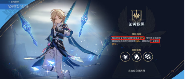 关卡整体BUFF:收到持续伤害(DOT)提高35%,受击后行动提前35%,敌方DOT状态下造成伤害下降35%。