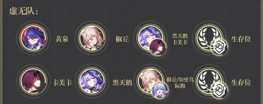 2、推荐角色:优先推荐黄泉、卡芙卡、景元、黑天鹅、刃,霍霍,飞霄。