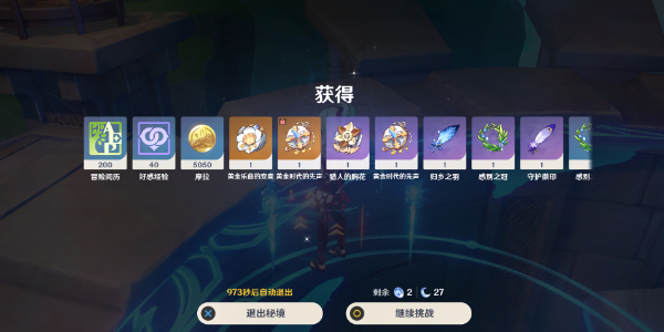因此,建议玩家在冒险等级45级之前,不要投入太多的体力去刷圣遗物副本,前期可以用四星圣遗物过渡,等冒险等级达到45级后,就可以在秘境中必掉金色圣遗物了?。