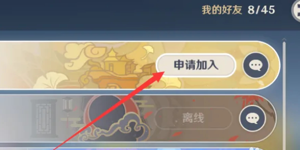 3、最后点击好友一栏中后方的【申请加入】按钮,然后好友同意即可联机。