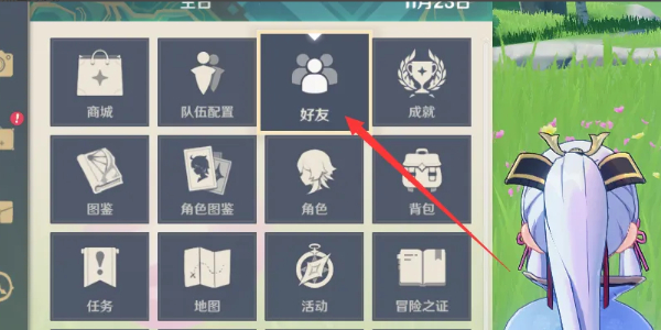 1、进入游戏点击左上角的派蒙图标打开菜单,然后点击菜单中的【好友】。