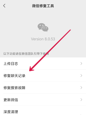 4、进入微信修复工具节目我们点击【修复聊天记录】选项,然后等待其修复即可。