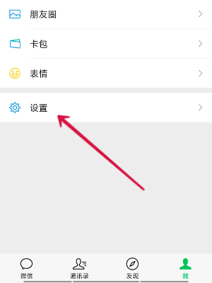 1、打开微信后,在【我】页面中点击【设置】选项。