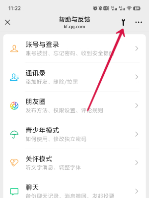 3、在帮助与反馈页面中我们点击右上角的扳手按钮,如下图所示。