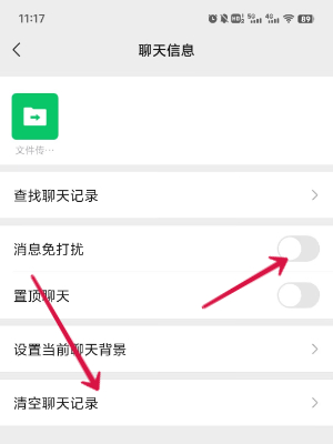 3、进入聊天信息页面,我们点击【清空聊天记录】将文件传输助手中的所有信息删除。