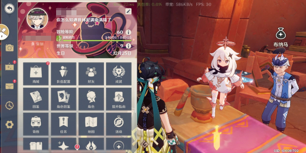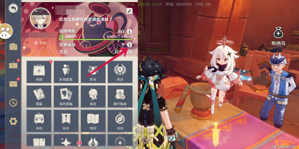1、进入游戏后我们点击左上角的派蒙图标就会弹出菜单,在菜单页面我们点击世界等级后方的感叹号;