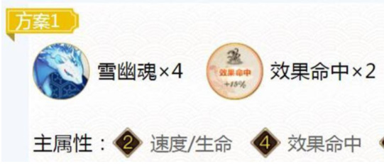 该搭配是目前雪女主流御魂搭配方案,魍魉提供的随机减益效果,不会与雪女冰冻冲突,给予对手双重减益效果,在原有的基础上进一步加强技能属性,能够对敌方式神施加高减疗、眩晕、沉默等负面控制属性。