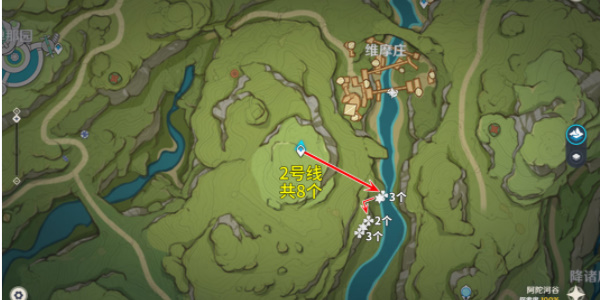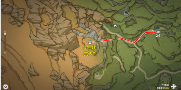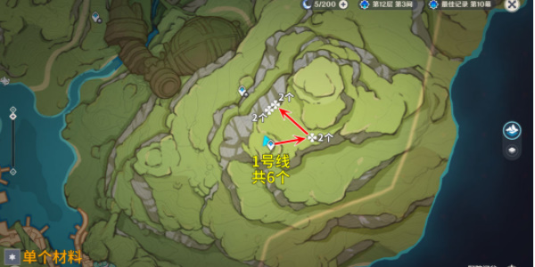 5、觉王之殿上方,共2个,采集路线如下图所示。