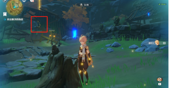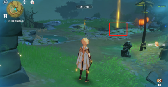 进入活动后与幼光对话进入梦境,共有6个漂浮的石狮子和2个漂浮的木箱