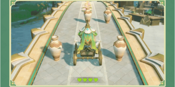 1、「花车摇曳」中,旅行者需要操纵花车躲避障碍,在前往终点的途中尽可能收集花朵,获得更高的得分。