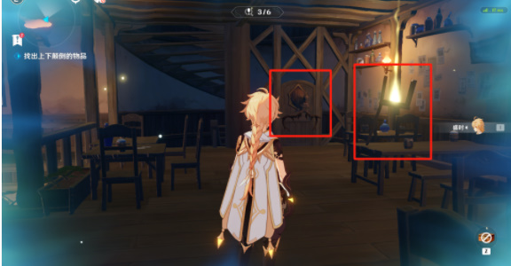 第一关中共六个物品需纠正,进入活动后来到梦境中的酒馆与柯林伍德对话。