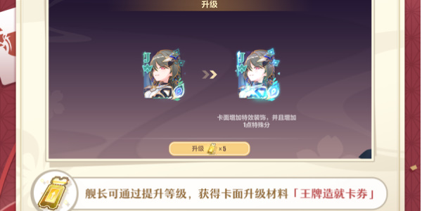 ps:舰长可通过提升等级,获得卡面升级材料「王牌造就卡券」。