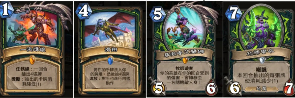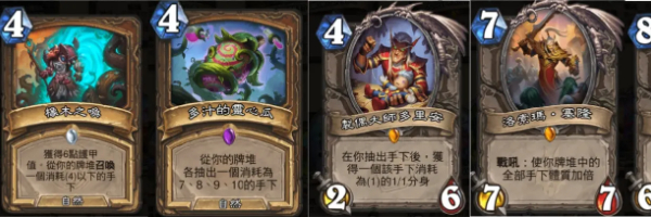 解析:任务瞎的对局赢点有两个,一是铺一地大恶魔,靠场面推死对手,二是一回合内打出阿兰娜,并通过武器大量抽牌疲劳死对面。