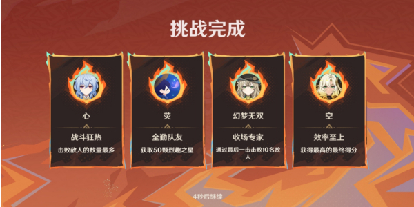 成功通过挑战后,将根据「练行项目」的达成情况,获取对应数量的「烈趣之星」。