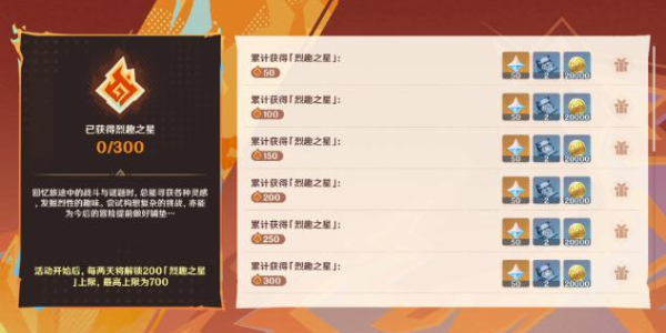 3、通过关卡后,将根据「练行项目」的达成情况,获取相应数量的「烈趣之星」,获得指定数量的「烈趣之星」可领取对应奖励。
