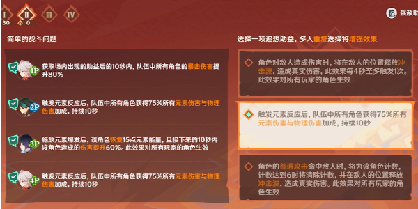 2、匹配后将随机决出4个关卡,以及能为本次玩法全程提供助益的「追想支援」,旅行者可根据关卡内容和「追想支援」选取合适的角色进行挑战。