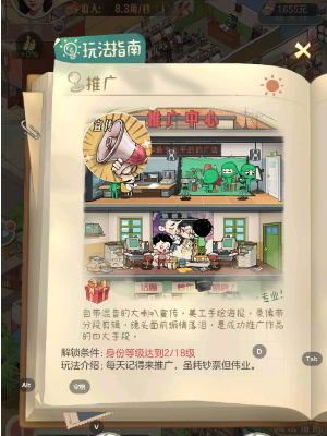 玩法介绍:每天进行推广,虽耗钞票但对玩家的事业建设非常有帮助。