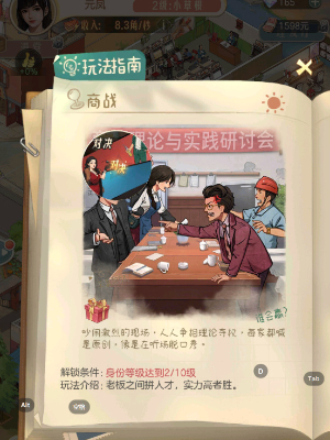 玩法介绍:老板之间拼人才,实力高者胜,赢者可以获得丰厚的奖励。