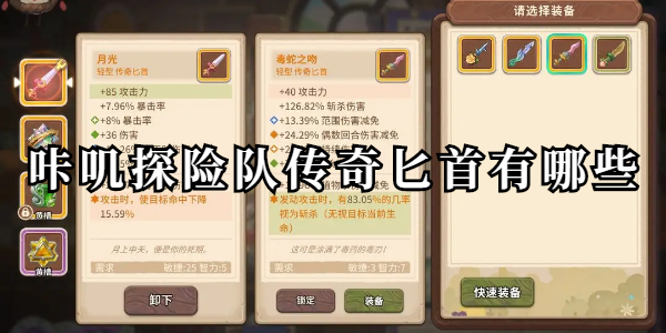 咔叽探险队传奇匕首有哪些?在游戏中有很多的传奇匕首,很多玩家都想知道有哪好用的匕首,下面小编就给大家带来咔叽探险队传奇匕首有哪些的相关攻略,感兴趣的小伙伴们一起来看看吧。
