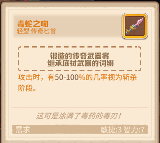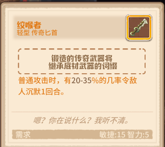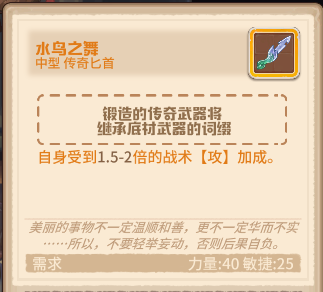 3、装备普通匕首需要同时满足敏捷、智力的属性要。