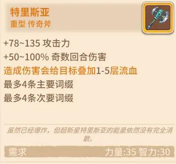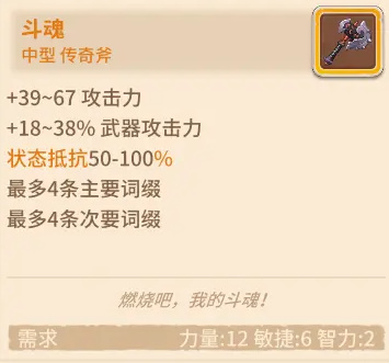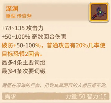传奇特效:破防增加50—100%,普通攻击有20%几率使目标恐惧2回合。